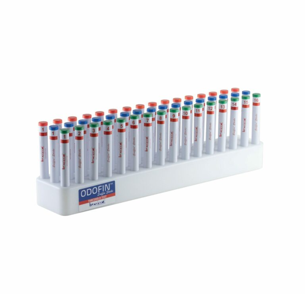 ODOFIN 嗅觉棒辨别测试用于检测气味辨别能力。测试包含 3 x 16 = 48 根嗅觉棒。受试者需要区分气味大致相同的几种气味。每次测试会提供三根嗅觉棒:两根气味相同,一根气味不同。受试者必须找出哪根气味不同。此测试共包含 16 种不同的气味(即 16 x 3 = 48 根嗅觉棒)。